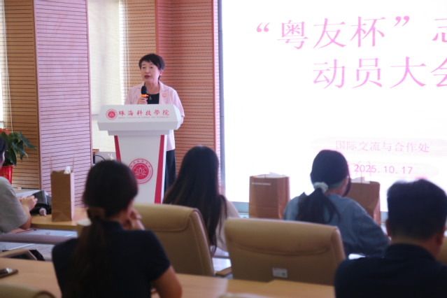 为做好赛事服务工作,国际交流与合作处于10月17日召开志愿者动员大会。国际交流与合作处处长董燕在会上强调,“粤友杯”作为珠海市重要外事平台,是展示珠科学子良好精神风貌与综合素养的宝贵窗口。她希望志愿者们严守纪律、注重礼仪,在服务中锤炼能力、拓展视野,展现珠科青年的责任担当与青春风采,并特别提醒注意防暑降温与个人安全,确保服务全程有序、高效、圆满。