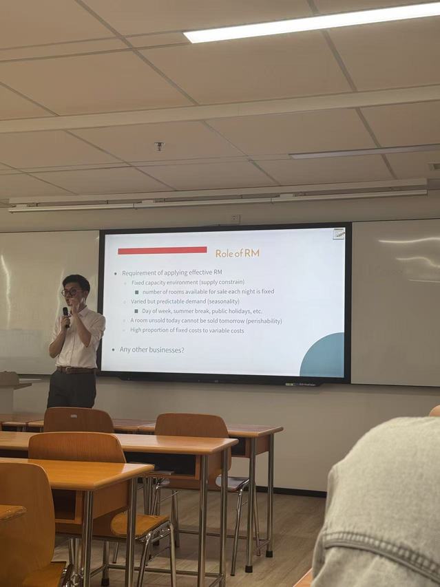 如果说葡萄酒课是感性的艺术,收益管理就是理性的科学。我们学习用算法预测需求波动,用动态定价平衡入住率与房价。最让我震撼的是案例研讨——一家度假村如何在台风季节通过精准促销挽回30%的预订损失。我意识到,现代旅游业早已不是简单的客房买卖,而是基于大数据的精密博弈。这门课给了我一个全新视角:如何在海量数据中捕捉商业机会,让每一间房都创造最大价值。