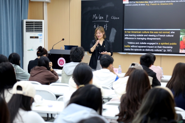 当天,Meilan P. Ehlert还为我校外国语学院的学生举行了一场题为“国际化背景下的跨文化沟通策略:如何有效提出异议”的专题讲座。Meilan P. Ehlert以其在跨文化沟通与教育社会语言学领域的深厚造诣,通过生动的案例与互动,深入剖析了不同文化背景下的沟通风格差异,引导学生掌握在全球化语境中有效表达与协作的策略。讲座现场气氛热烈,为在场师生提供了宝贵的学术滋养与思维启迪。