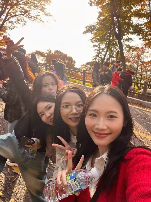 十一月的韩国迎来了最美的秋日,我们的留学生活也在学习与实践中愈发充实。课余之时,我们与友人前往首尔塔登高望远,将整座城市的秋日风光尽收眼底,感受当地的人文风情;行走在铺满银杏叶的街道上,金黄的落叶层层叠叠,这是我们第一次亲眼见到这般唯美的银杏盛景,在欣赏自然之美的同时,也领略到异国秋日的独特韵味。