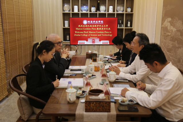 Marcos教授对我校办学成就与发展理念给予高度评价,称赞我校“不仅有优质的生源,更有远大的教育理想”。他介绍了圣保罗州立大学的主要情况及学科优势,并指出,巴西市场潜力巨大,中资企业亟需既懂技术又通晓中巴文化与商业规则的人才。他表示将全力推动两校在教育交流、人才培养、就业联动的合作共识,同时对合作项目的实施与落地提出了具体建议。随后,双方代表就实习就业联动、学生联合培养、产学研合作等多个议题进行深入探讨并达成重要共识。